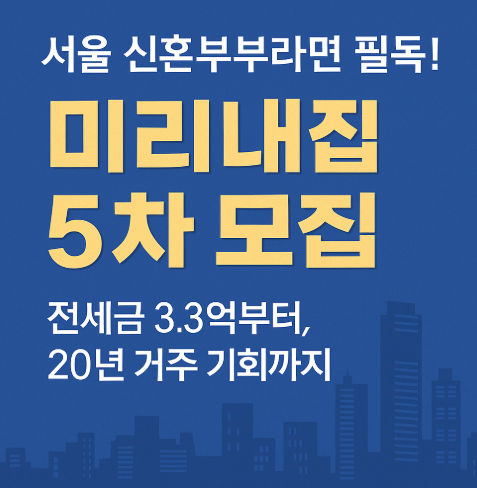 서울시가 신혼부부를 위한 장기전세주택 ‘미리내집’ 5차 공급을 실시합니다. 강남·송파·강동 등 서울 주요 지역에 총 485세대가 공급되며, 전세금은 최저 3.3억 원부터 시작해 최대 20년까지 안정적으로 거주할 수 있습니다.