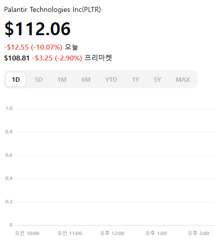 2025년 2월 20일 기준, 팔란티어 테크놀로지스(Palantir Technologies Inc, PLTR)의 주가는 112.06달러로, 전일 대비 12.55달러(-10.07%) 하락하였다.