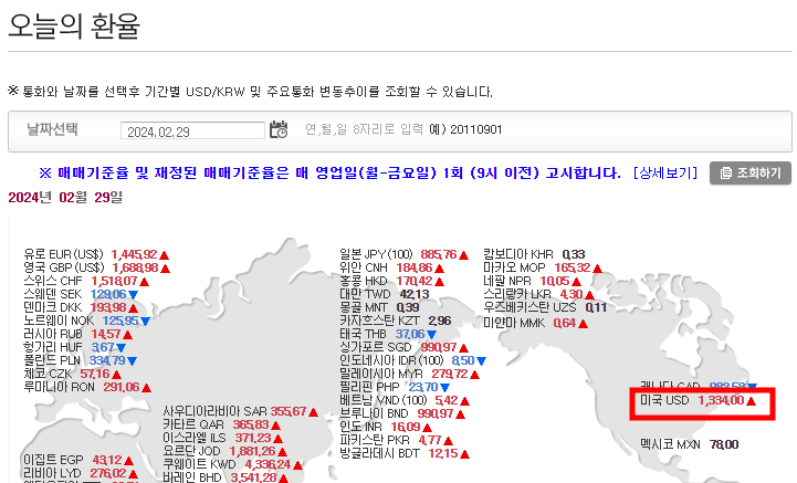 3. 아래와 같이 환율이 1334원으로 조회됩니다.