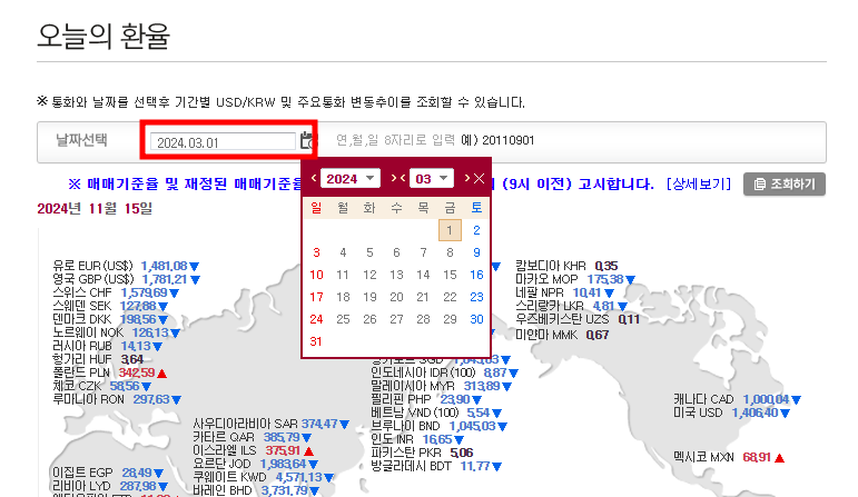 (증여일자가 공휴일이라면 환율은 이전 영업일 날짜로 조회됩니다)