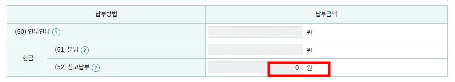 5. 납부해야하는 세금이 아래와 같이 0원임을 확인할 수 있습니다. 확인 후 다음 단계를 눌러 신고를 마칩니다.