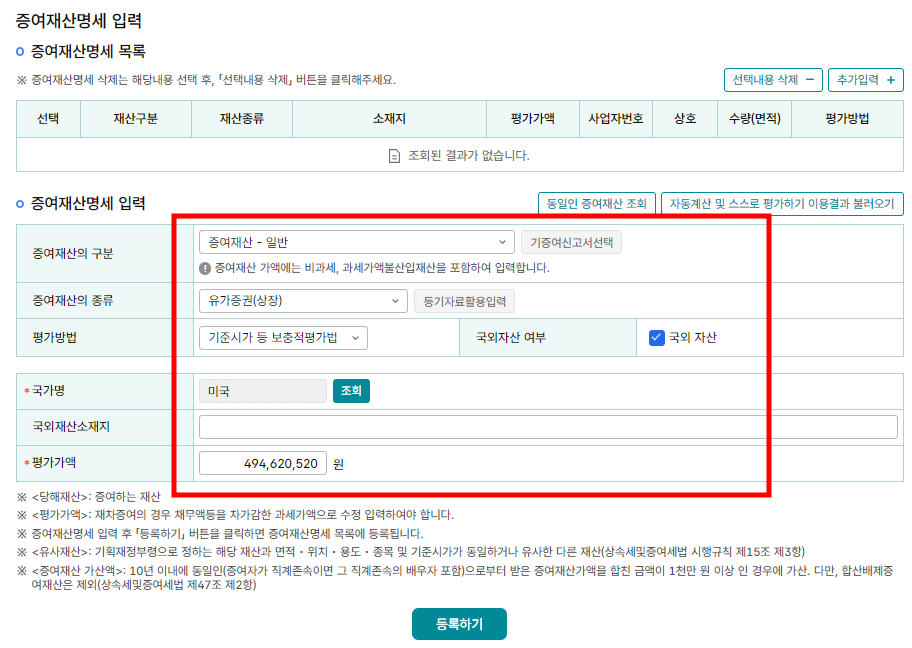 증여재산금액만 확인한다면 실제로 홈택스에서 주식 증여 신고하는 방법은 매우 간단하네요,