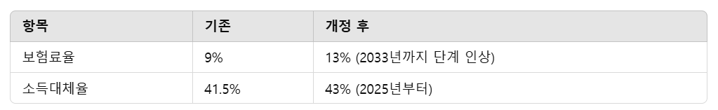 또한, 소득대체율은 2025년부터 기존 41.5%에서 43%로 상향 조정됩니다.