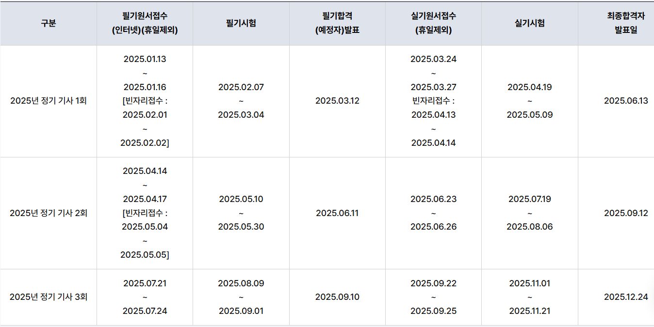 정확한 일정은 큐넷에서 공지되듯이 다음과 같아요